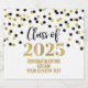 Studentfest anpassningsbar champagne flaska-etikettering 2025 med svart konfekt och konfekt från guld glitter mönster.