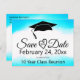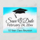 Skicka den här blå vattenfärgen "Spara datum"-mallens vykortsmeddelande för klassåterförening. Anpassa texten i mallens fält för fram- och tillbaka eller klicka på anpassa för att välja det teckensnitt stil, storleka och färg som du vill använda.