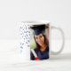 Anpassadets fotomallklass för 2022 studenten mugg med silver och blå konetti mönster.