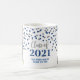 Anpassadets fotomallklass för 2021 studenten mugg med silver och blå konetti mönster.