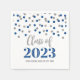 Anpassade napkins för 2023 års klass med glamorblått och silver konetti mönster.