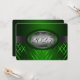 Inbjudan till grönt och silver studentfest med ljus och mörk grönt rand och ett band från silver som visar studenten år. Kortets baksida är grönt med lätt silver-teckensnitt som gör att människor kan fylla i inbjudningarna till studentfesten.