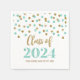 Anpassade napkins för 2024 års klass med glamoröst guld och turkos konetti mönster.