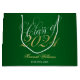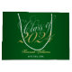 En elegant-skripttypsklass på 2024 studenten-presentsäck. Visas i guld, vitt och grönt. Mönster är platt tryckta illustrationer/grafik - INTE FAKTISKT GOLD FOIL.