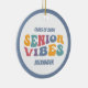 En roligt-retur-gåva till den högre akademikern. I denna julprydnad visas texten från 1970-talet i stil som lyder "seniorvibes". Anpassa till namn.