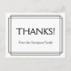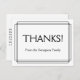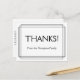 Den här elegantens tack-du-vykortsdesign innehåller meddelandet "THANKS!" på framsidan, tillsammans med ett anpassade på baksidan. Den skulle kunna användas för att erbjuda tack till någon som har gjort något trevligt.