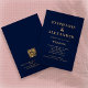 Klassen Blåblå Guld-text QR-kod Bröllop. Modern enkelhet med den här elegantens textdesign i den klassiska flottan och guld. Du kan ändra teckensnittet färg och text på Redigera-menyn. Du kan också ändra bakgrundsinformationen färg på båda sidor om du vill. En QR-kod visas på baksidan för att dina gäster ska kunna komma åt osans online och se lägesinformation. Ändra bara exempeladressen så skapas den automatiskt.