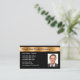 Klassy poto riktiga gods-klassens affärskort med enkel textlayout som du kan anpassa, en bild av en manlig riktig gods-agent som du enkelt kan ersätta med ett eget foto, och en namn-banderoll i guld färgad som ge dina affärskort ett uppskalbart utseende och en uppsåtlig känsla. Designad för en verkstads-, mäklars-, agent- eller bonusbranschverksamhet.