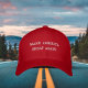 Klassiskt rött "MAKE AMERICA UNDERBAR AGAIN"-hatt med fetstilt broderad text.