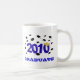 Blått och mugg för guldstudentenfirande. Skräddarsy text och bakgrunder med ditt namn och skola färger för att skapa unikt och personifierade gåvor. Matcha t-skjortor, hattar, muggar, hälsningkort, portofrimärken och mer gåvor som är tillgängliga i galleri.
