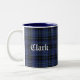 Stilig keramisk mugg som göras i det traditionella mönster för pläd för blått- och svartklanClark tartan. Läser text för den gammala världen för vit Clark, som är anpassadet, så att den kan läsa något som du önskar. Gör en underbar gåvaidé för någon.