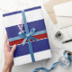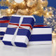 Djärva blått- och vitrandar med en röd brytning görar randig i centrera.
