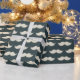 Klassikermustaschen formar med illustrerade sydde kanter i repetitionmönster på svart.