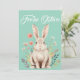 Osterkarte "Frohe Ostern" im klassischen Stil mit Hase und Blumen. Wunschkarte für eine schöne Osterzeit für Familie und Freunde.