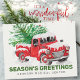 Klassisk akvarell röd lastbil säsongshelser vykort