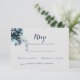 Denna klassiska akvarellblomma vita rsvp är perfekt för en rustik bröllop. Designen har akvarell handmålade blå blommor och blad som är snyggt sammanställda till en vacker bukett.