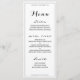 En klassisk middagsmeny som erbjuder förrätter, huvudrätter och efterrätter. Titlarna är skrivna med en klassisk svart svajig font kalligrafi och menyvalen är i en lättläst blocktext. Menyn är helt anpassningsbar för alla tillfällen.