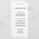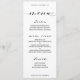 En klassisk middagsmeny som erbjuder förrätter, huvudrätter och efterrätter. Titlarna är skrivna med en klassisk svart svajig font kalligrafi och menyvalen är i en lättläst blocktext. Menyn är helt anpassningsbar för alla tillfällen.