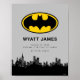 Fira din lilla superhjältes ankomst med denna anpassningsbara affisch med klassisk Batman-symbol och statistik för nyfödda! Med den ikoniska Batman-symbolen över Gotham City och utrymme för att anpassa med din babys namn, födelsedatum, vikt och andra detaljer, är denna stilrena affisch en perfekt souvenir eller dekoration för barnkammaren för fans av Gothams beskyddare.