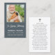 Klassiskt och enkelt begravningsbönekort i mörk dammig blå färg. Lägg till ditt favoritfoto, skript och klassisk typografi används. På baksidan av kortet finns bönen som kan anpassas med en dikt.