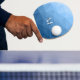Klassisk blå geometrisk maskstorlek mönster Monogr Pingisracket