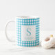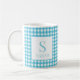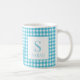 Klassisk Blå Gingham Karo Monogram Namn Kaffemugg