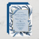 Klassisk blå Löv Guld Monogram-Möhippa Inbjudningar