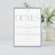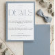 Dela all viktig information om bröllopsdagen med dina gäster med hjälp av detta eleganta och minimalistiska brölloppskort. Designen har en sofistikerad blå färgpalett och ren typografi, perfekt för en modern och tidlös fest. Den innehåller avsnitt för detaljer om mottagningen, boendeinformation och en plats för din bröllopswebbplats. Den enkla men raffinerade estetiken säkerställer att dina gäster har alla nödvändiga detaljer på ett ögonkast, vilket gör deras planering smidig.