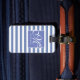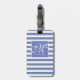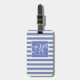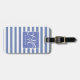 Klassisk blå och vit randig - skriptmonogram bagagebricka