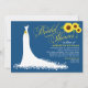 Elegant inbjudningskort för möhippan för den snyggt briden till ska ha ett ornerat kalligrafskriptteckensnitt och en blommande bröllop med solrosdetaljer. Vitt, klassiskt blått, grönt, gult och brunt färg.