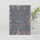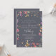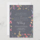 Den här klassiska blommigten med blå vild fram och bak är perfekt för ett tropiskt bröllop. Utformningen har rosa, lila, gult, burgundblomma, marinblommor och blåa handdragna blommor av vild, i vackra former. Spara papper genom att på baksidan av inbjudan ange mer information i stället för på ett separat visitkort.
