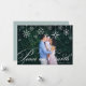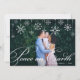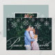 En elegant, klassisk helgdag-kortdesign med ett utfallsorienterat vågrät eller ett landskapsinriktat foto, med en snöflinga gräns överst. "Fred på jorden" förekommer i traditionella kalligrafiskript. Anpassa med din familj namn och året med vita bokstäver på nedre högerna och lägg till ett andra foto på baksidan.