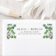Elegant Emerald Grönt Blommigt Eucalyptus Bröllop Return Address label. Toppen av spara datum meddelande, bröllopsinbjudningar, möhippa inbjudan och tack... kort med en delikat och enkel leafy grey eucalyptus och blommor adressetikett som innehåller både bruden och brudgummens första namn högst upp.