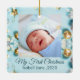 Retro-skript Baby Första julfotot Ceramic Ornament