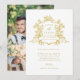 Klassisk Blommigt Vapensköld Guld Bröllop foto Tack Kort