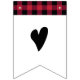 Den här utformningen är klassisk och modern! Den har en buffel som pläderar mönster i svart och röd. Det står "NY GIFTA" med vackra hjärtan.
