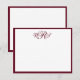 Skapa ditt eget personliga monogram anteckningskort med anpassade 3 bokstäver initialer i burgunderröd elegant skrifttyp med minimalistisk kantdesign.
