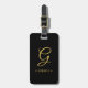 Klassisk Chic Script Monogram Svart Och Guld Anpassad Bagageetikett