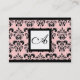 KLASSISK DAMASK, KVARE MONOGRAM,rosa Visitkort