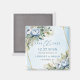 Klassisk dammblå Blommigt Guld Ram Spara datum Magnet