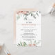 Denna klassiska dammiga rosa ros 50-årsjubileum-inbjudan för bröllopet är perfekt för en rustik händelse. Designen har eleganta akvarell dammiga rosa rosor och grönt bladverk, snyggt sammansatta till vackra buketter.