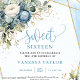 ✅ För matchande artiklar, sök 28BD i mina samlingar ✅ Elegant Dusty Blue Blommigt Sweet 16 Inbjudan firar hennes milstolpe-födelsedag med denna elegant dammiga blå blommigt Sweet 16 inbjudan. Designat med vattenfärgsdamm i blåa blommor, vita böner och ett skakande guld glitter ram, skapar det ett tidlöst och kvinnligt utseende. Perfekt för formellt, klassiskt eller modernt sweet sixteen party. De mjuka blåtonerna är sofistikerade, medan guld tillför en fingervisning om lyx. Fullständigt anpassade med namn, datum och händelseinformation. Perfekt för elegantens födelsedagsfirande, trädgårdsevenemang eller partyn i balrum. En snyggt som fångar hennes speciella dag på ett vackert sätt.