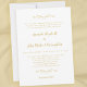 Eleganta och enkla bröllopsinbjudningar i vackert delikat guld och vitt är klassiska, formella och tidlösa. Kantlös design låter dig enkelt välja pappersform för din inbjudan att inbjuda gäster till din fest. Två dekorativa krullor som var och en innehåller ett enda hjärta innesluter varsamt dina bröllopsdetaljer. Tre textrader ovanför namnen på bruden och brudgummen är perfekt konfigurerade för att lista namnen på brudens föräldrar. En textrad nedanför parets namn är avsedd för information om brudgummens föräldrar. För bästa resultat, hoppa över rader och använd versaler som i exempellayouten. Andra textkonfigurationer finns tillgängliga i denna inbjudningspaketsdesign.