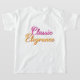 T-shirt-designen innehåller frasen "Classic Elegance" i ett dynamiskt regnbågsteckensnitt med flera färg. Färg blandas sömlöst och skapar en slående och öga-fångsteffekt mot svart bakgrund. Utformningen framkallar en känsla av tidlöshet i stil och sofistikering, perfekt för dem som uppskattar både klassisk och modern estetik.