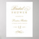 Formell välkomstskylt för antik guldbröllopsbrudsljus med vacker typografi som kombinerar en traditionell blomstrande kalligrafiskrift med klassisk blockbokstavering. Inkluderar en dekorativ rullande designaccent. Den anpassade texten kan fullständigt anpassas för den blivande fru - hennes namn och datum för brudsljuset. Vänligen handla i vår Klassiska Eleganta Antik Guld Bröllopssamling för samordnade designer.