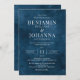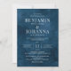 Inbjudan Klassisk och elegant bröllop med blommigtens blå vattenfärgsbakgrund och vit brev. Endast text med traditionell ordalydelse. Pappra alternativ för digital utskrift eller fysisk utskrift. Anpassa den till namnen av Mr. och Mrs., plats, register, OSA information och alla detaljer som du behöver ta med. Matchande svitprodukter finns.