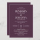 Klassisk inbjudan och inbjudan till elegant bröllop med en bordeau eller vin färg och vitt brev. Utformning med endast text och traditionell ordalydelse. Pappra alternativ för digital utskrift eller fysisk utskrift. Anpassa den till namnen av Mr. och Mrs., plats, register, OSA information och alla detaljer som du behöver ta med. Matchande svitprodukter finns.