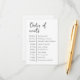 Klassiskt elegant bröllop-händelsekort för tidslinjehölje som du kan lägga till i bröllop-sviten eller ge vid ingången för dina gäster för att få kännedom om händelseordningen. Den här designen har upp till 10 kortplatser, men du kan anpassa den efter behov genom att klicka på knappen för att redigera designen.