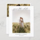 Klassiskt stil budget bröllop spara datum med en enkel och minimal svartvit design med en kombination av traditionell serif typsnitt och ett elegant-skript tillsammans med ditt datum i ett stort format för en modern beröring tillsammans med ditt favoritfoto. Baksidan har ett andra foto för totalt två bilder. Den här eleganten sparar du datumet underbart för ett formellt bröllop.