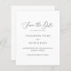 Klassisk vit budget bröllop spara datum med "Spara datumet" i ett känsligt skript. En enkel layout utan någon grafik gör detta till en elegant och tidlös design, perfekt för ett formellt bröllop. Den här fina designen utan foton är ett underbart alternativ för ett par som vill ha ett annat datum än fotospara datumet.